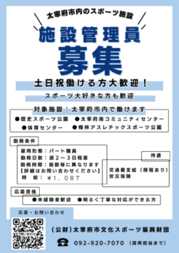 (公財)太宰府市文化スポーツ振興財団で一緒に働いていただける方を募集しています。