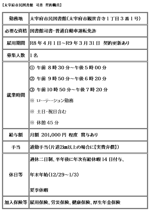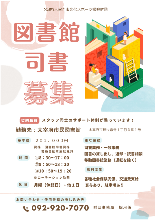 【司書募集】太宰府市民図書館 司書契約職員